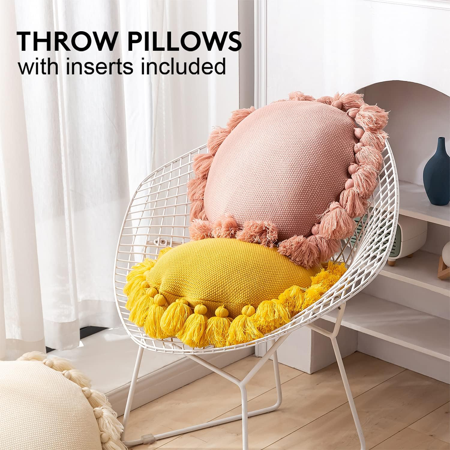 22 Tassel BallsBoho tassel design, stylish and elegant. Each edge is securely sewed with exquisite tassels, eye-catching and crafted, creating a cute look.Tassels is adorable and will not shed. |