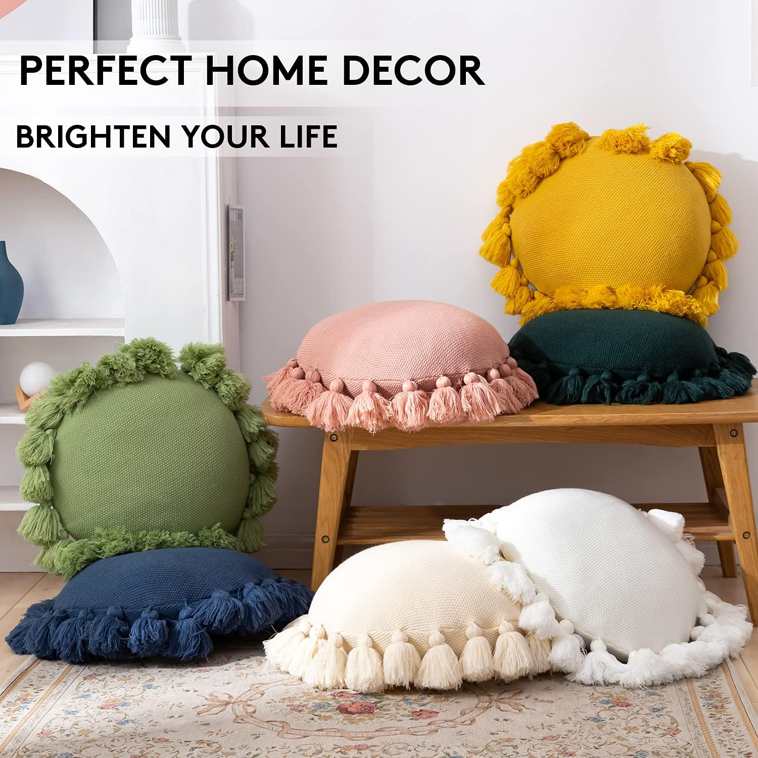 - Use as floor cushions:these round decorative pillows looks nice to be put on floor at home.