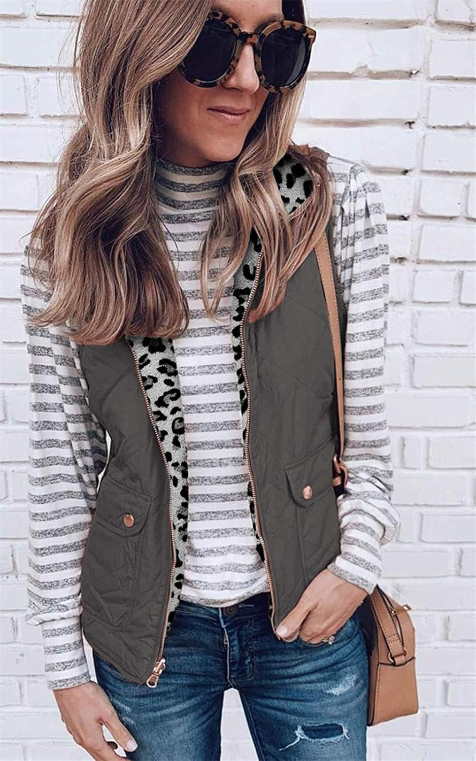 LAMISSCHE Women’s Stand Collar Zip Closure Sleeveless Zipper Reversible Jackets Ladies Casual Warm Gilet Quilted Outerwear